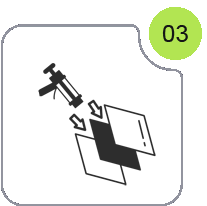 Un adhésif est appliqué sur les différents matériaux